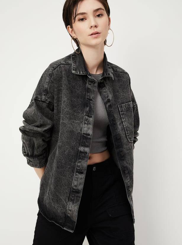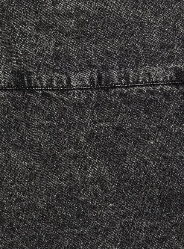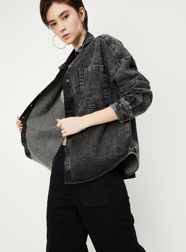 Embrace the laid-back style with this denim shirt. It has a spread collar, full sleeves with buttoned cuffs, and double patch pockets on the chest. The washed design adds a touch of vintage charm. Model Size :