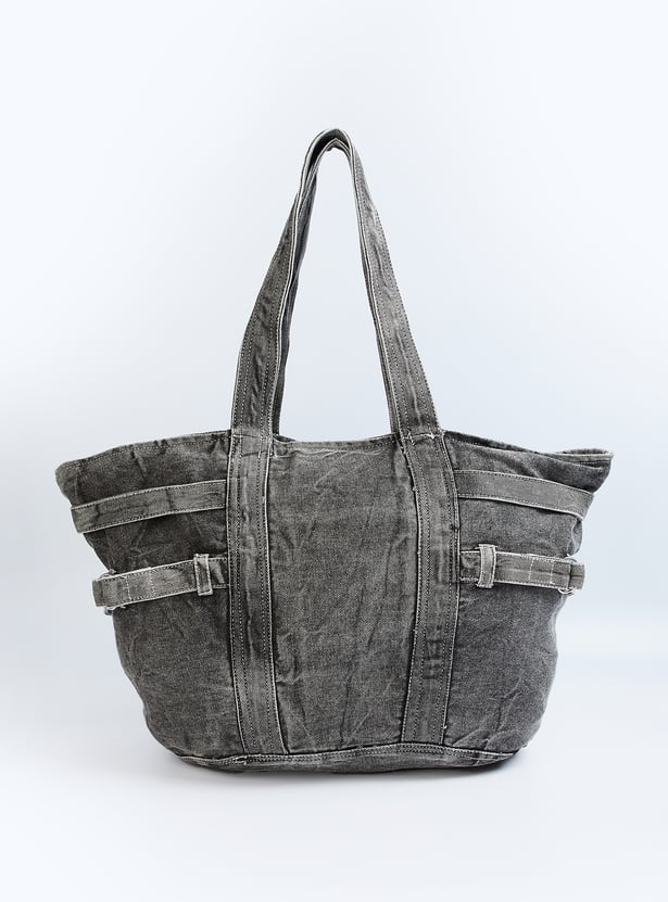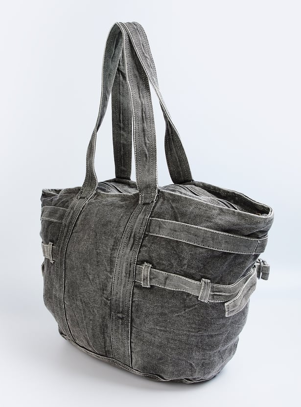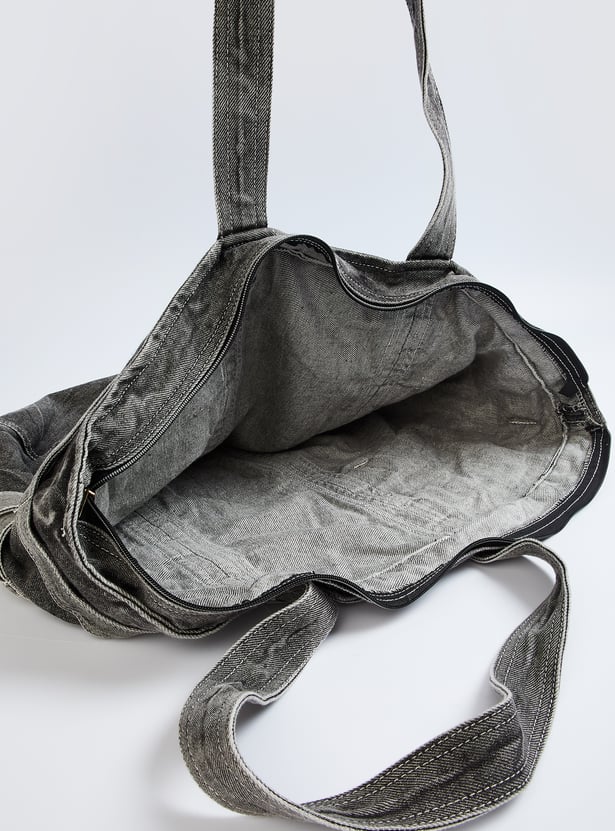 Carry your essentials in style with this washed denim tote bag, featuring a single spacious compartment and a secure zipper closure. The two sturdy handles ensure comfortable carrying, whether you're heading to the beach, running errands, or going out for the day. The casual, laid-back look of the denim adds a trendy touch to your outfit, making this tote both practical and fashionable.