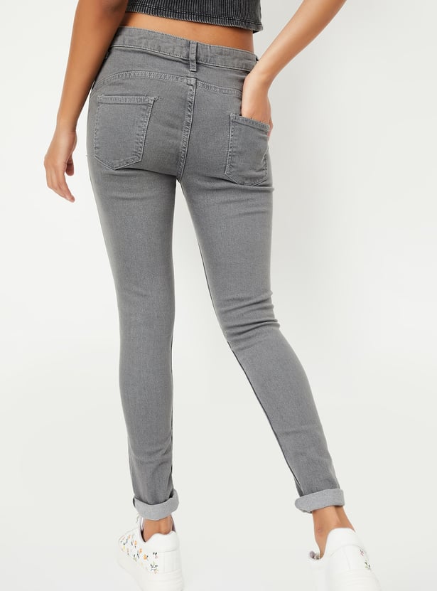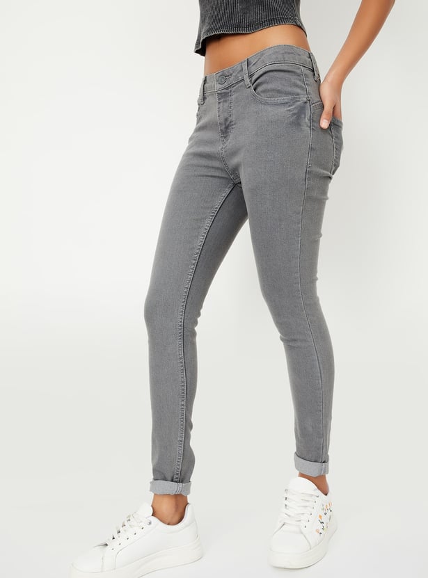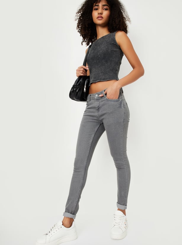 These washed skinny fit jeans offer comfort and style with a sleek fit, five pockets, and a button closure. Perfect for casual outings or lounging, they blend fashion and functionality effortlessly.