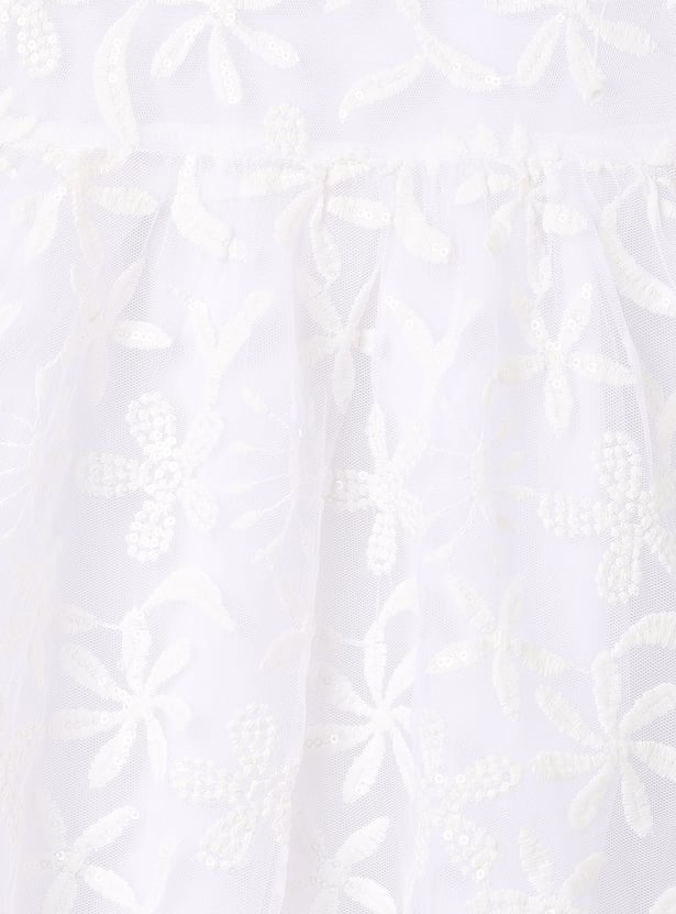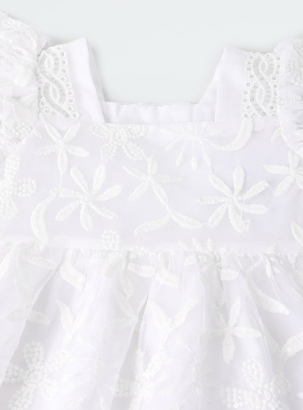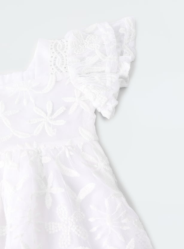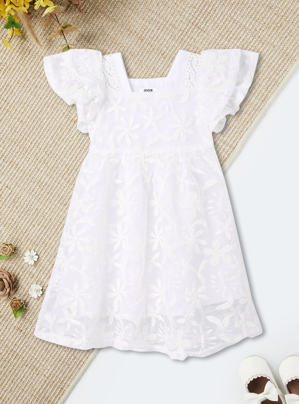 This embroidered dress combines elegance and charm with delicate A-line silhouette, flutter sleeves, and a flattering square neck. It’s the perfect mix of style and comfort for a variety of occasions.