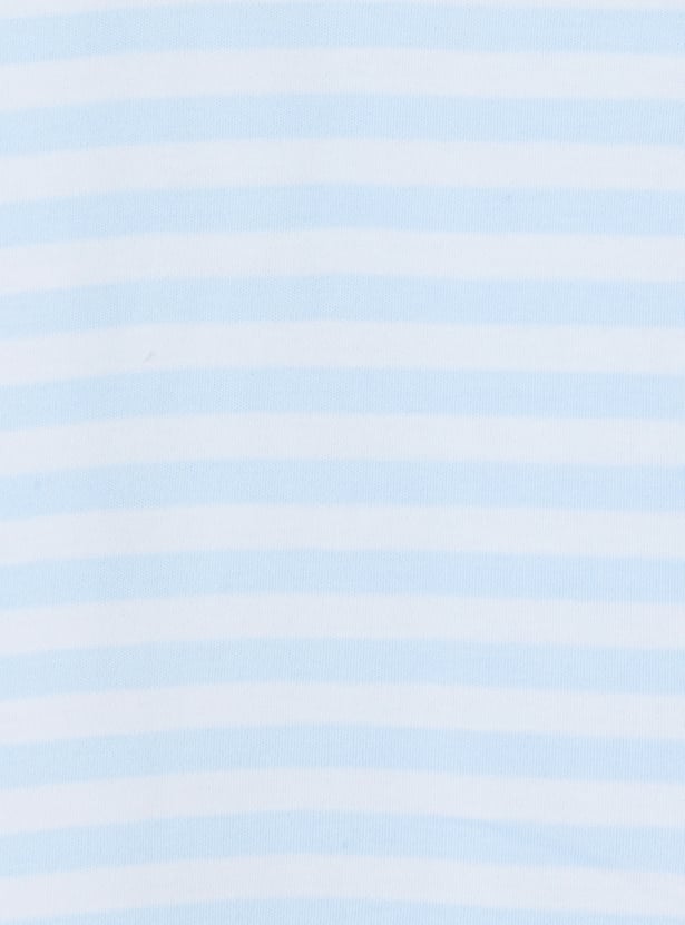 Cute and comfortable with a touch of fun, the back Hello Kitty print striped T-shirt features a classic round neck and half sleeves. The charming Hello Kitty print at the back adds a surprise element of joy, making it a must-have for casual days and playtime.