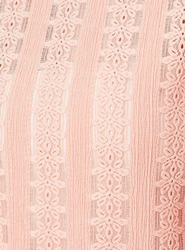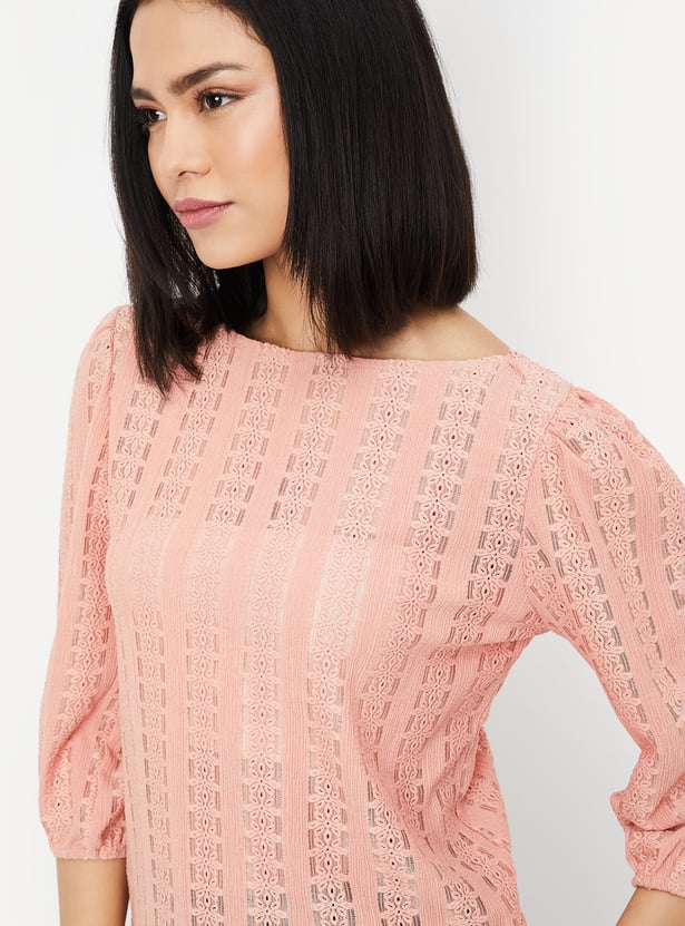 This knit top with floral patterns perfectly combines comfort and style. It features a round neck and 3/4th puffed sleeves and a flattering fit that's versatile enough for casual or layered looks.