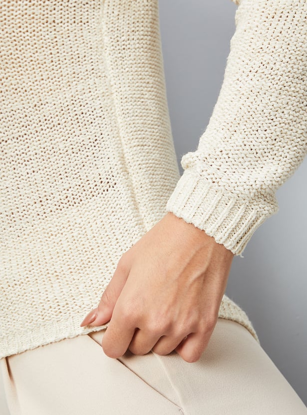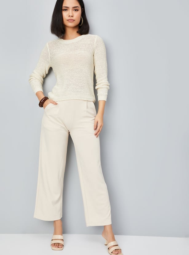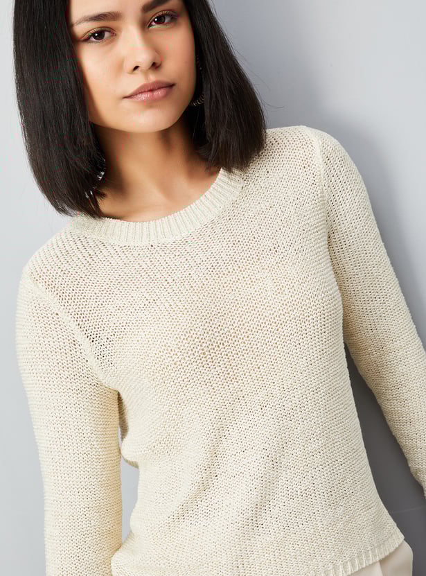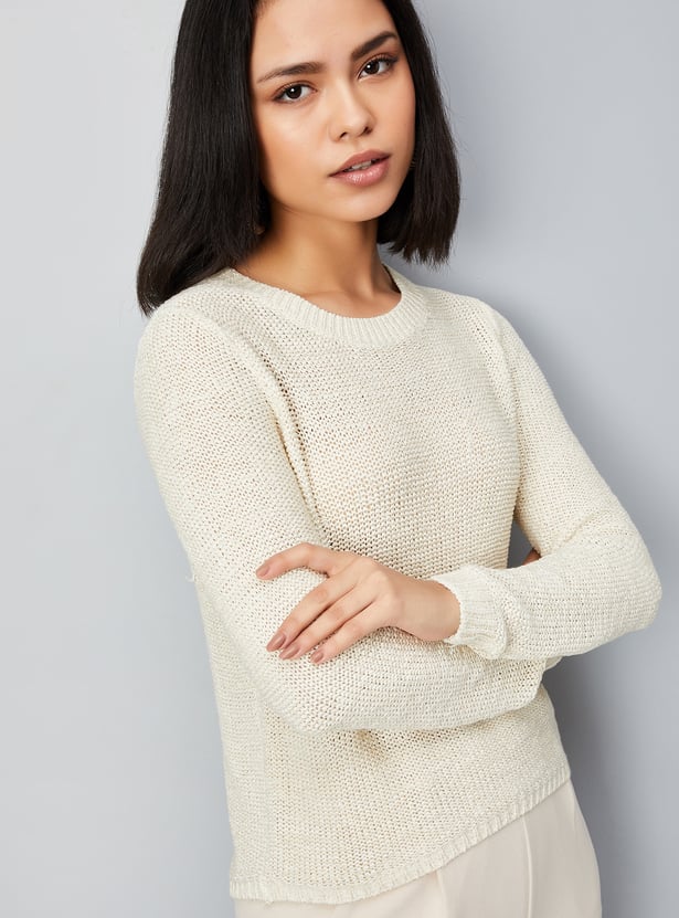 This knit top is the perfect combination of comfort and style. Featuring a round neck and 3/4th sleeves, it offers a flattering fit that's versatile enough for casual or layered looks.