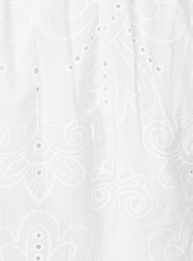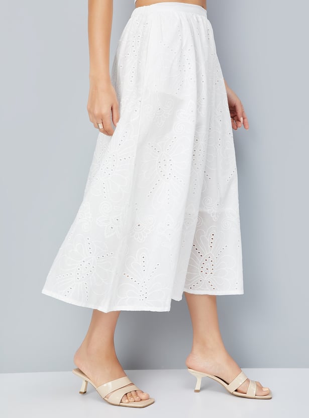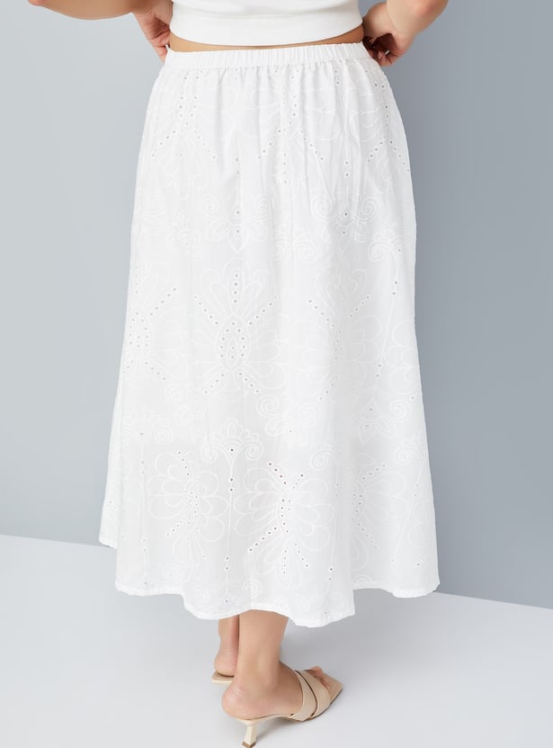 Add a touch of elegance to your wardrobe with this Schiffli skirt, featuring delicate embroidery and an elasticated waist for a comfortable, flattering fit. The side pockets offer practicality without compromising style. Model Size :