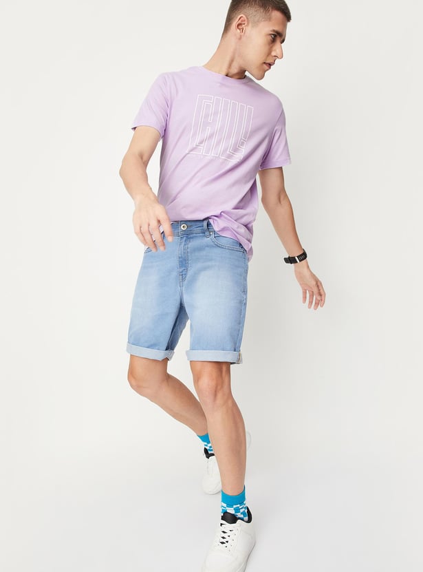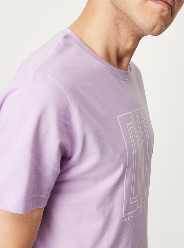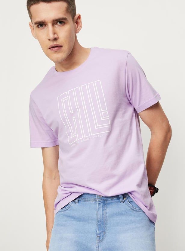 Spice up your wardrobe with this typographic printed T-shirt. It features a crew neck and half sleeves. Team it up with a pair of shorts and lace-up shoes to complete the look.