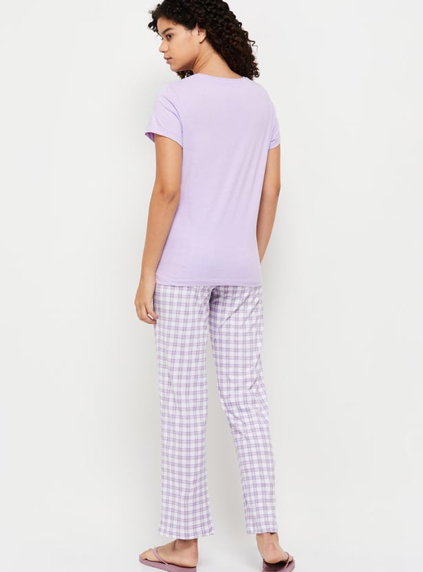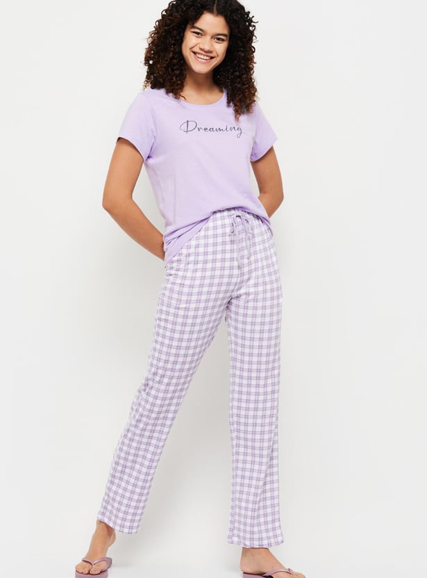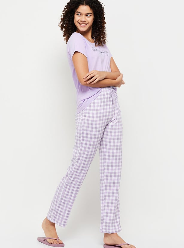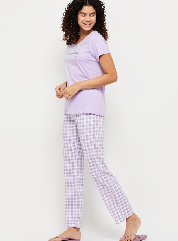 Women Checked Lounge T-shirt With Pajama