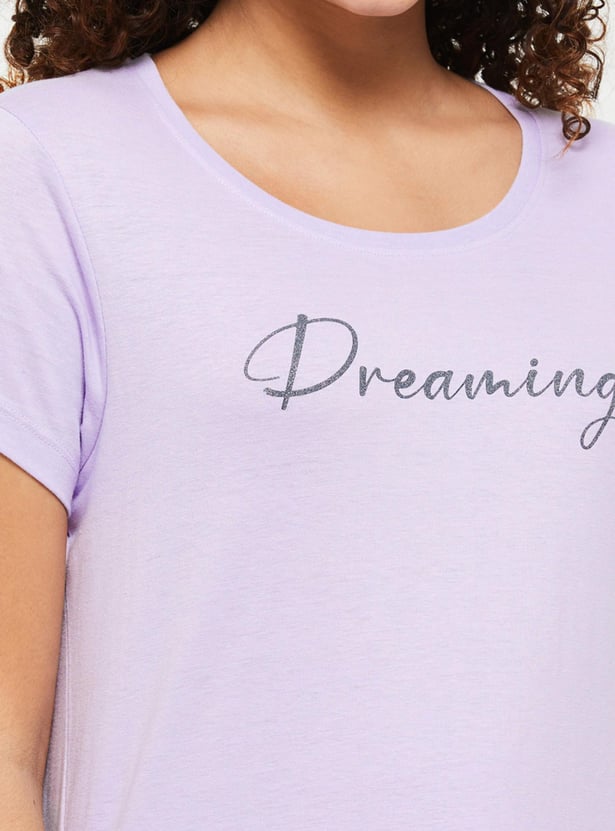 A pair of printed lounge set, which comes with a round neck and short sleeves T-shirt. This set comes with a pair of printed pants detailed with an elasticated waistband and drawstring closure.