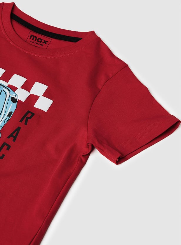 Fuel the fun and excitement with this printed T-shirt for your little chap. This T-shirt features a graphic print, crew neck and short sleeves letting your little trendsetter stand out.