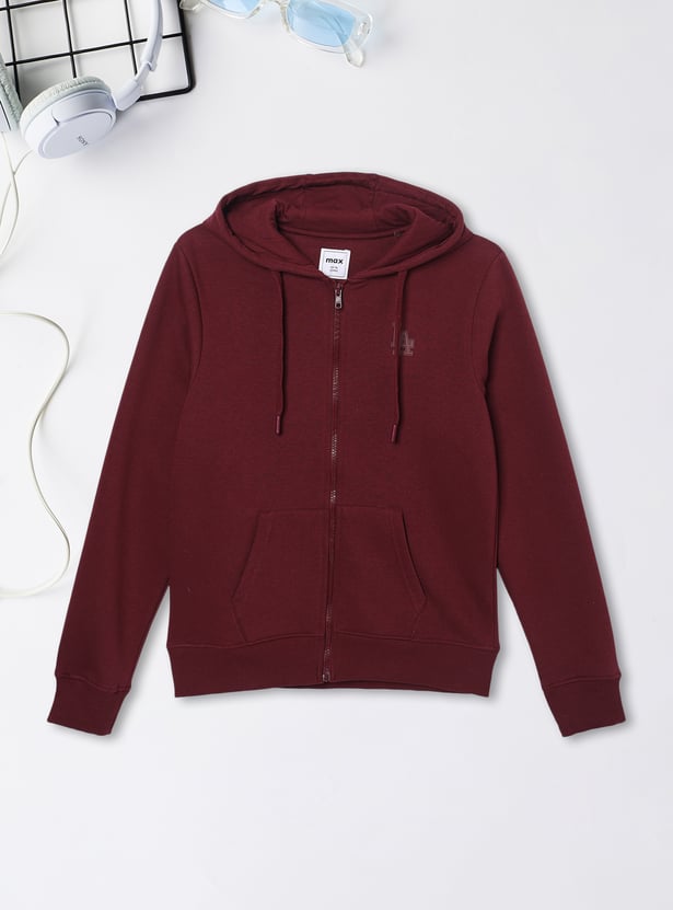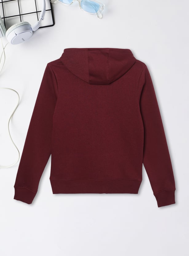 Elevate your casual layers with this knit hooded sweatshirt featuring a cosy hood, a roomy kangaroo pocket, and classic full sleeves. Soft and comfortable, it’s designed for everyday ease and warmth.