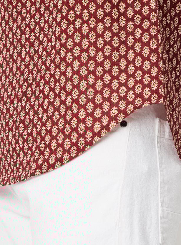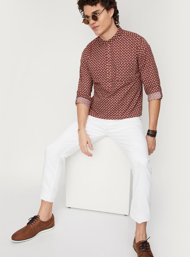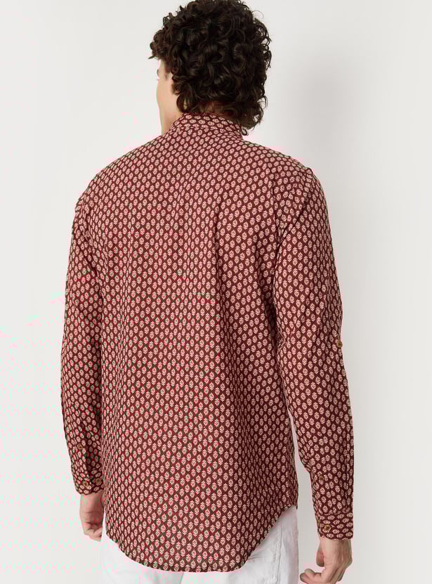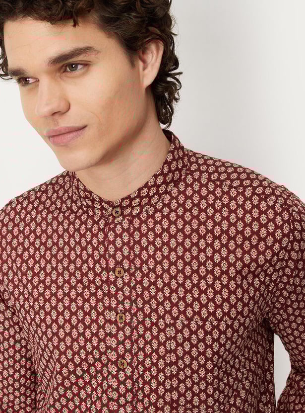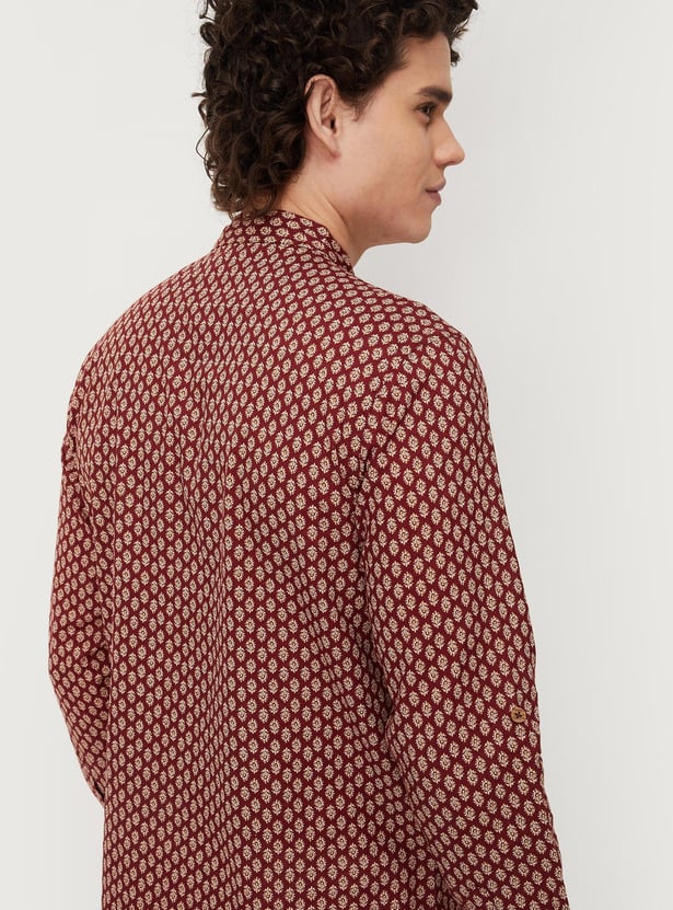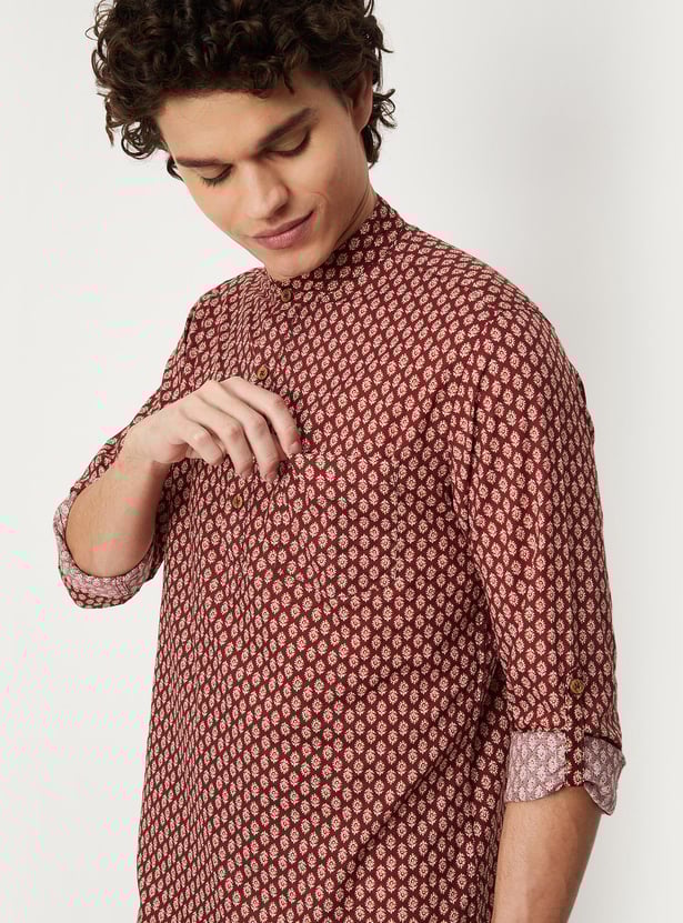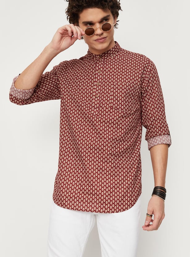 Men Block Print Band Collar Short Kurta