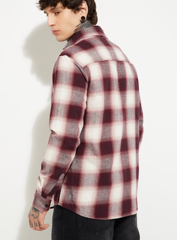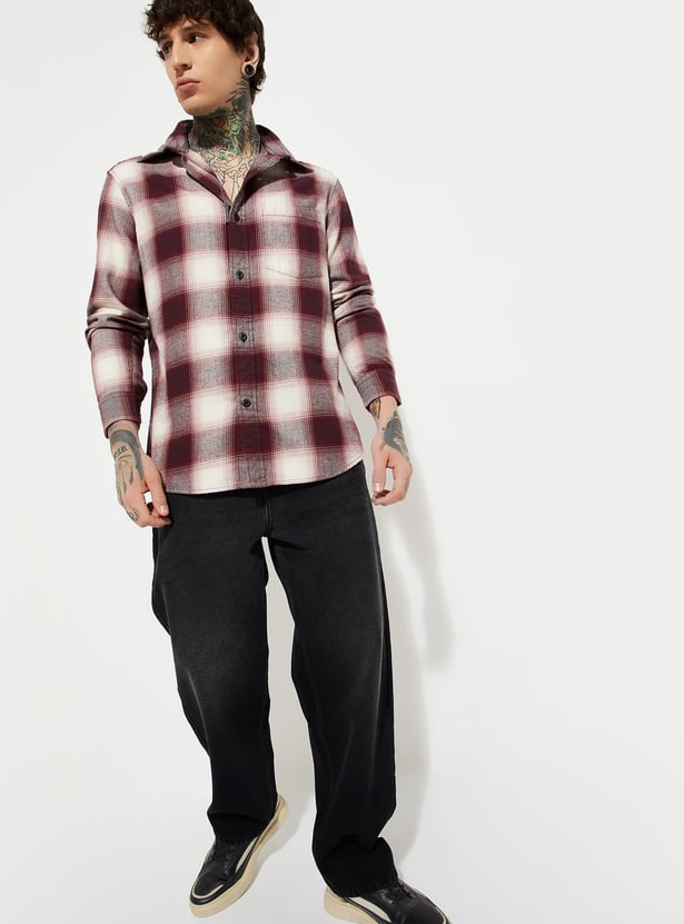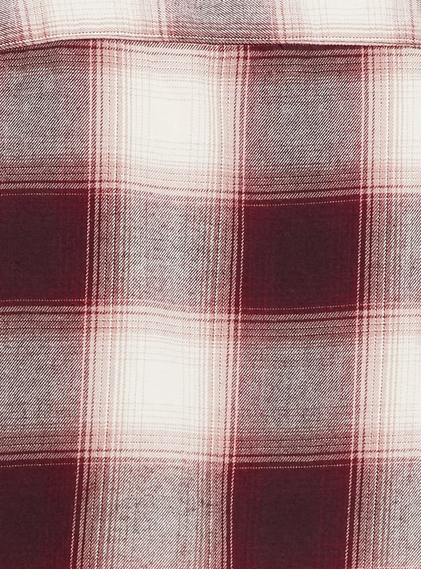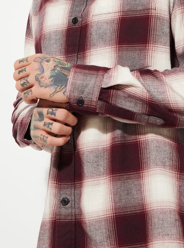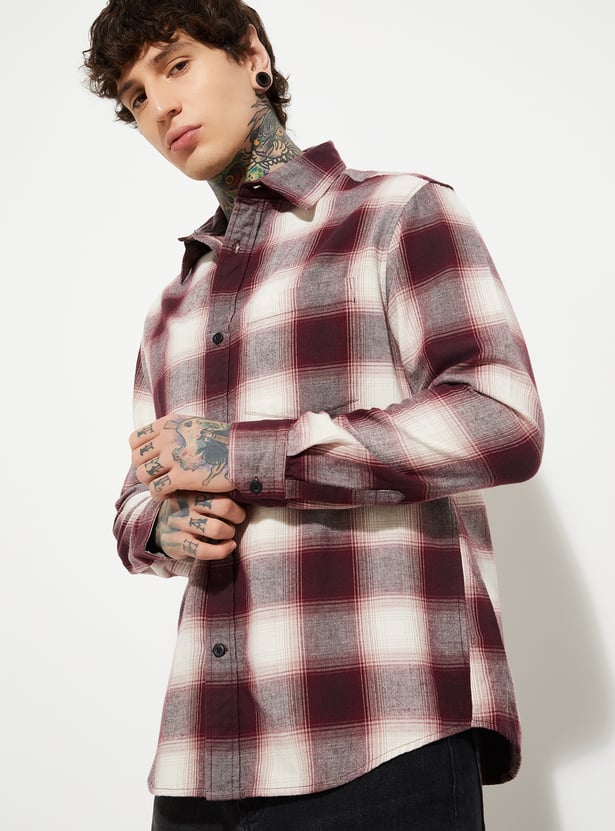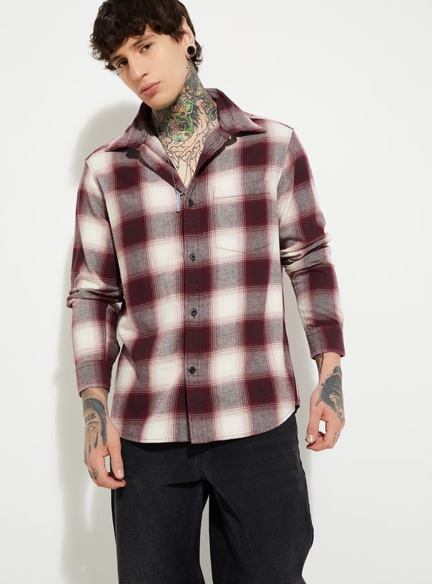 Amp up your wardrobe with this checked shirt that has a spread collar, full sleeves with button cuffs, a button placket, and a curved hem. Perfect for a variety of casual occasions, this shirt is a versatile addition that effortlessly combines style and functionality.