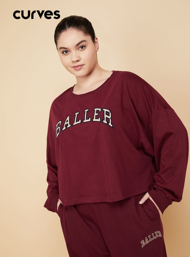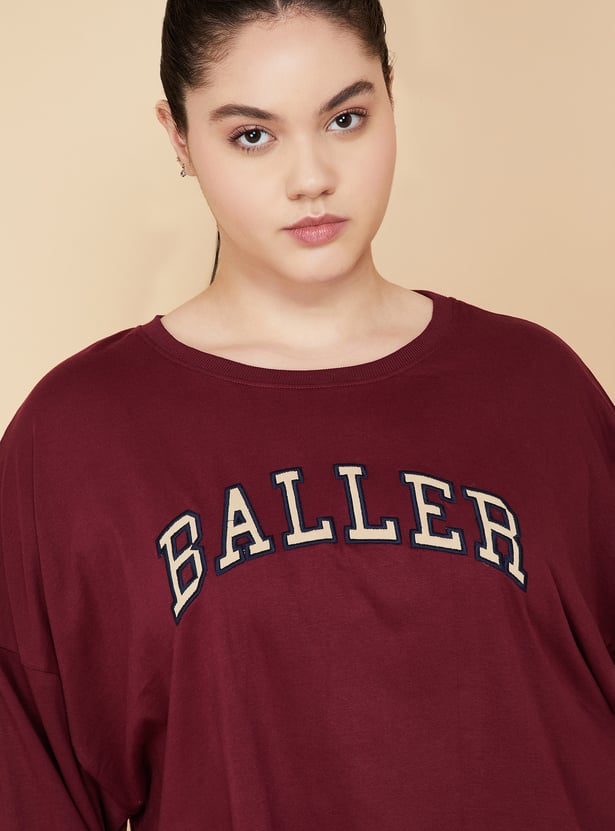 Women Applique Boxy Fit Sports T-shirt