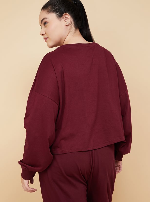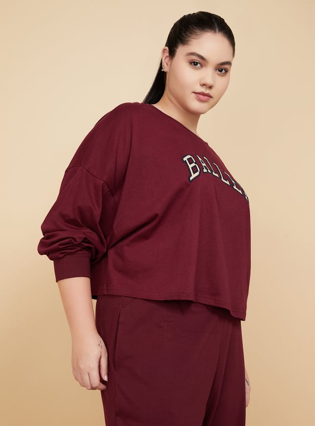 Stay active in style with this appliqued boxy fit sports T-shirt, designed with a classic round neck and full sleeves for added coverage and comfort.