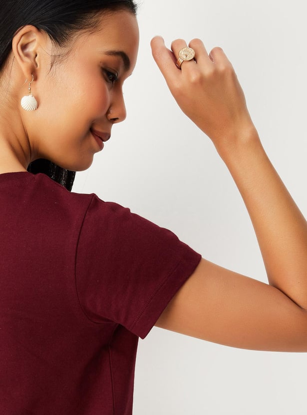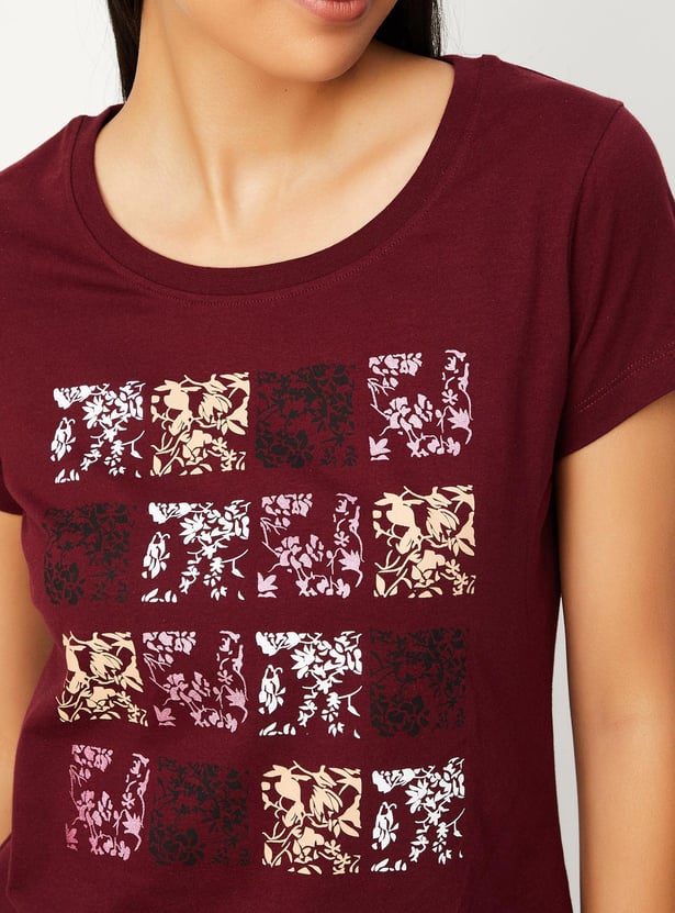 Add some style to your everyday wardrobe with this trendy t-shirt. Featuring a graphic print, it has a classic round neck and half sleeves. Pair it with jeans and sneakers to create a standout look.