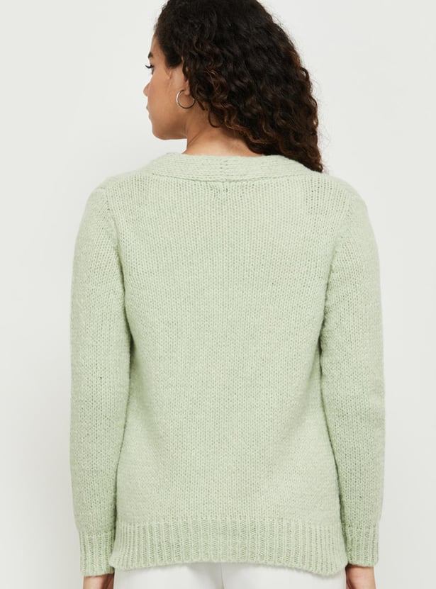 Cosy up your outfit with this floral detailed cardigan featuring a V-neckline, pearl button front, long sleeves, and ribbed trim. Pair this cardigan with a T-shirt and a pair of trousers for a casual day look.