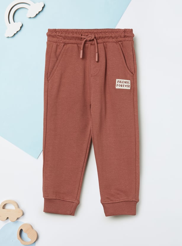 Elevate your casual wear with this appliqué joggers set designed for comfort and style. The T-shirt features a crew neck and full sleeves with a chic appliqué detail, while the joggers come with a drawstring closure and handy pockets for everyday ease.