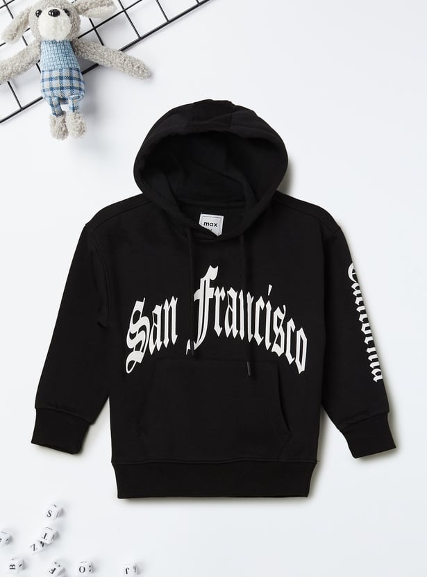 Add a cool and playful update to his casual wardrobe with this pack of hoodies. It includes two styles, one with a chest print and the other with an applique detail on the chest. They are designed with a hooded neck with drawstrings, full sleeves, and ribbed trims. The applique hoodie also features striped trims and a kangaroo pocket.