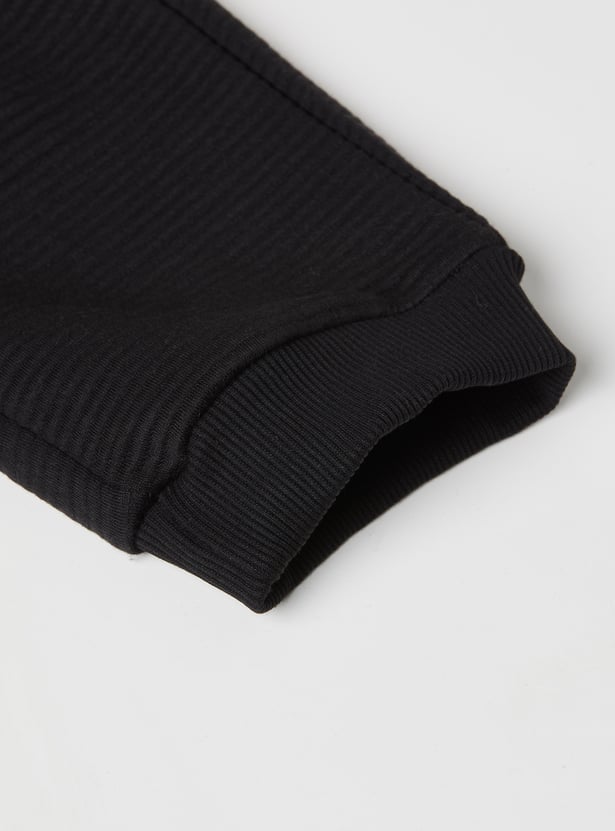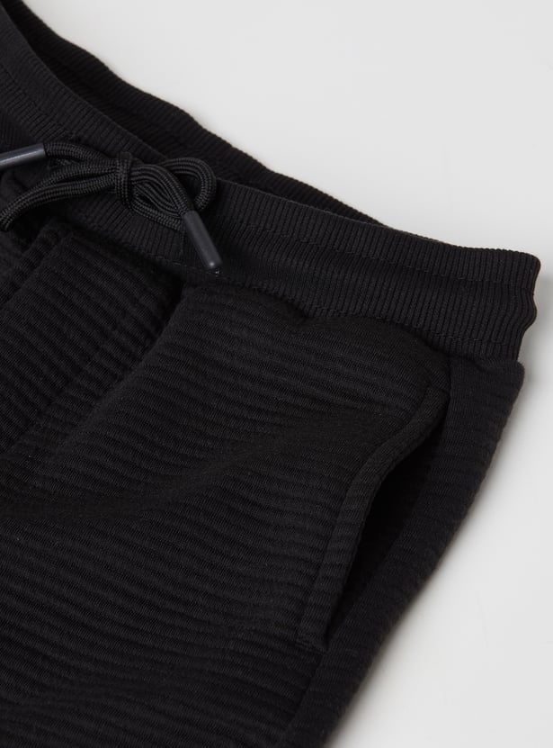 This pack includes two full-length joggers designed with an elasticated waist and drawstring, complete with side pockets and snug ankle cuffs—one featuring a cool embossed design and the other finished with a textured ribbed look.