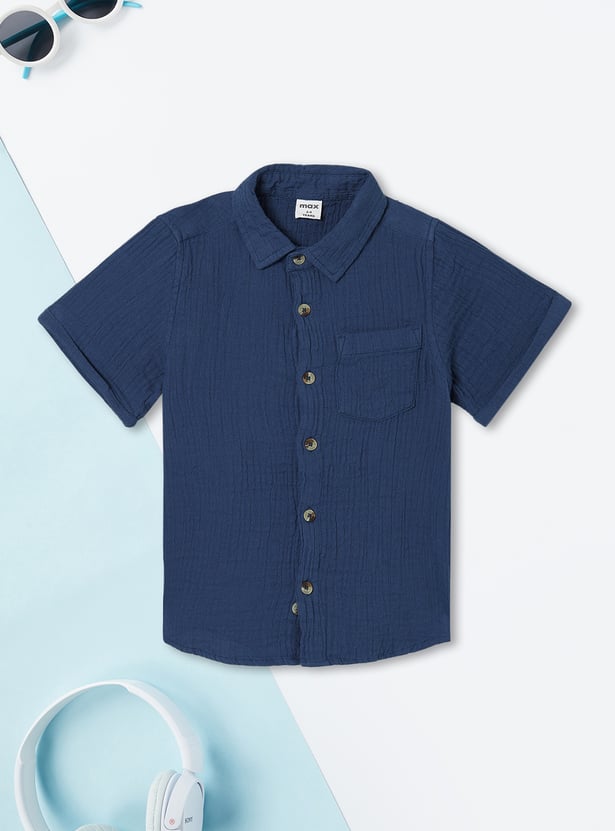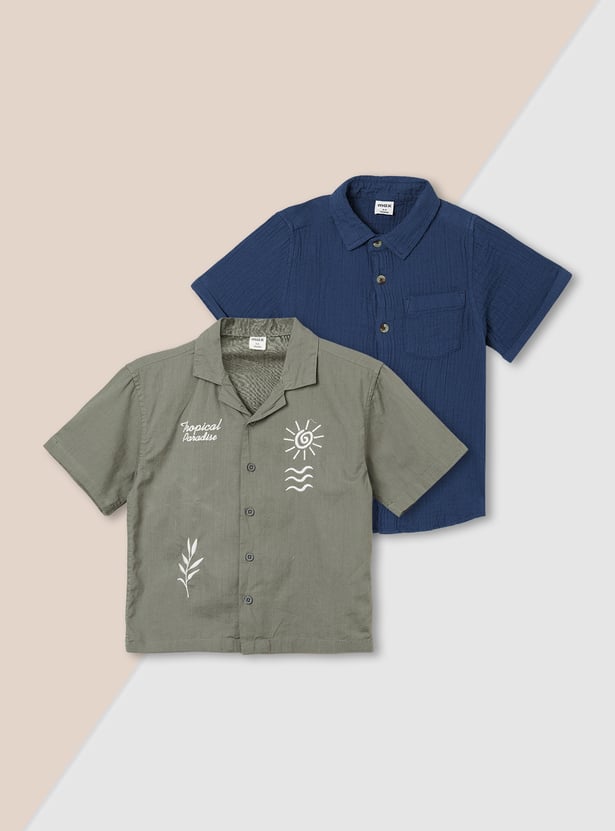 This pack brings two half-sleeve button-down shirts with a sharp spread collar—one in a clean, solid, textured design and the other elevated with subtle embroidery that adds a refined, tactile touch.