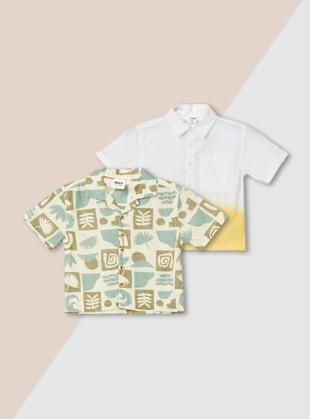 This pack of two assorted shirts includes one printed shirt with a breezy resort collar and one ombré shirt with a classic spread collar. Both feature half sleeves and a neat button-down front, offering stylish versatility for his wardrobe.