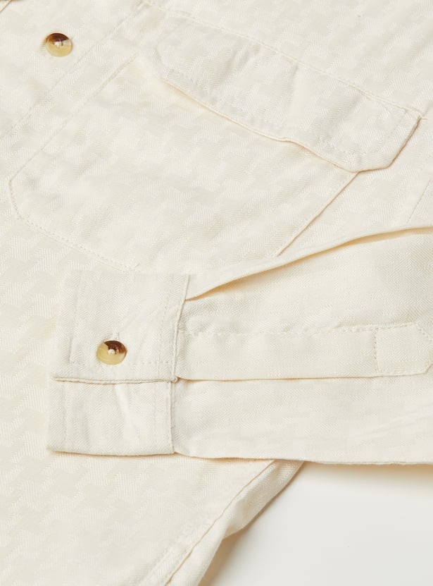 A smart pair of shirts featuring a classic spread collar, neat button closure, full sleeves, and functional flap pockets for a structured look.