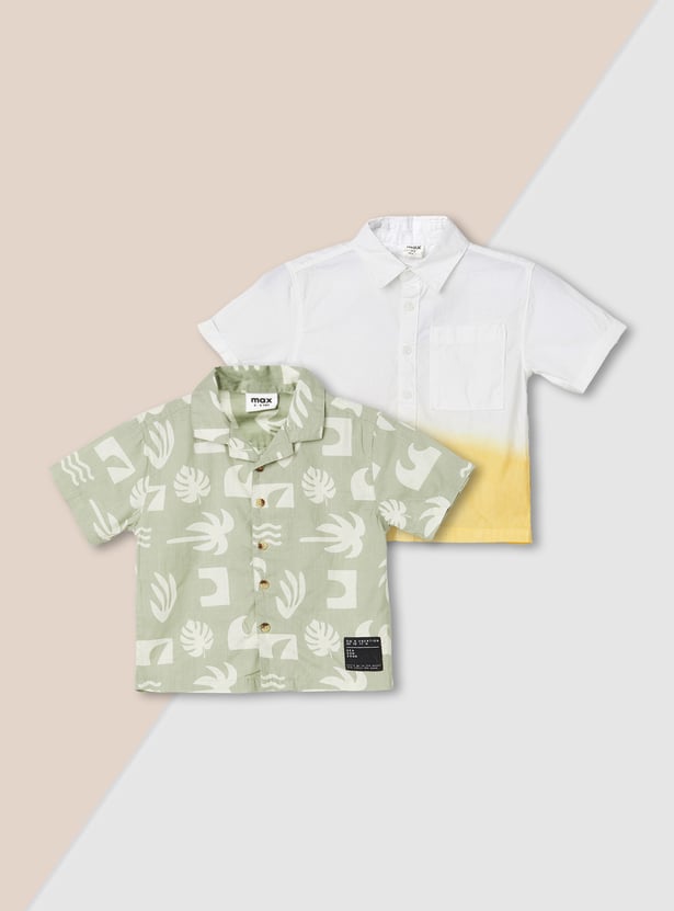 Update your casual staples with this pack of two assorted shirts. One features a spread collar, other features a resort collar, each designed with a relaxed resort collar, a clean button placket, and easy half sleeves.