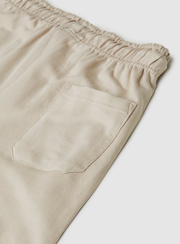 Built for comfort and everyday ease, this pack of 2 shorts is a practical addition to his wardrobe. One comes in a solid tone while the other features a heathered finish for subtle variation. Both are designed with a drawstring waistband, side pockets, and a back patch pocket for functional style.