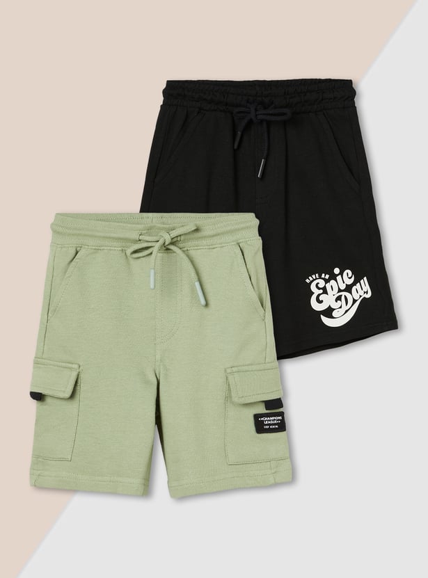 Casual and versatile, this pack of two assorted shorts features a comfy drawstring closure and practical pockets. Designed for everyday ease with a relaxed fit and stylish appeal.