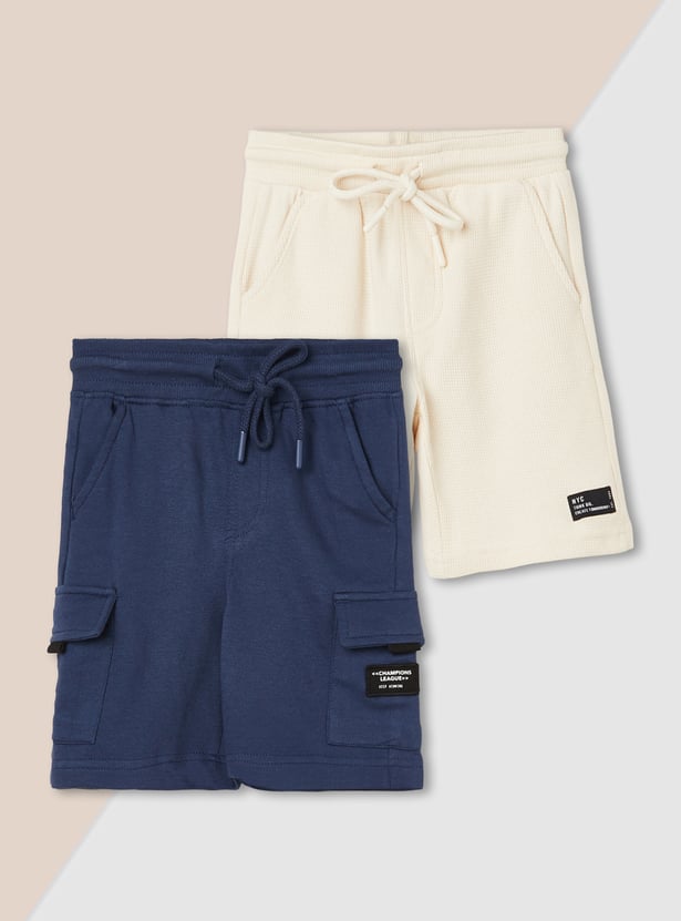 Update their everyday essentials with this assorted pack of two shorts featuring a comfy drawstring closure for an adjustable fit and roomy pockets. Designed for easy, laid-back wear all day long.