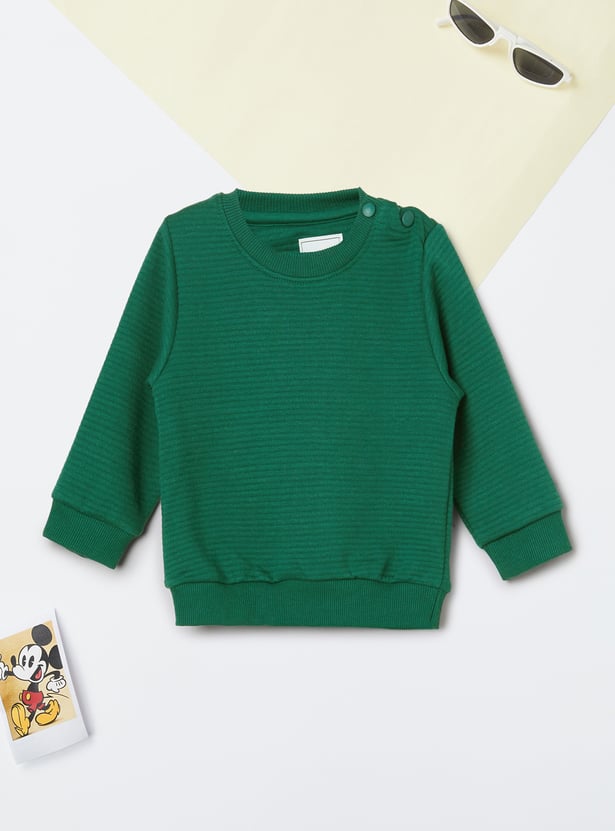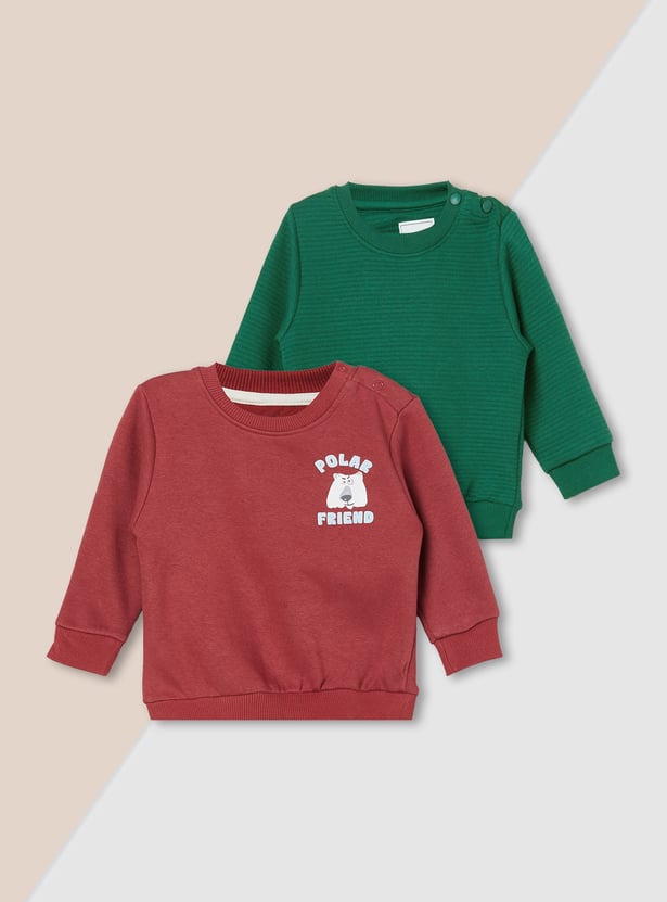 Refresh your winter must-haves with this cosy pack of two assorted sweatshirts, featuring a classic crew neck, full sleeves, and a snug ribbed hem. Designed with a handy snap-button closure at the neck for easy dressing.