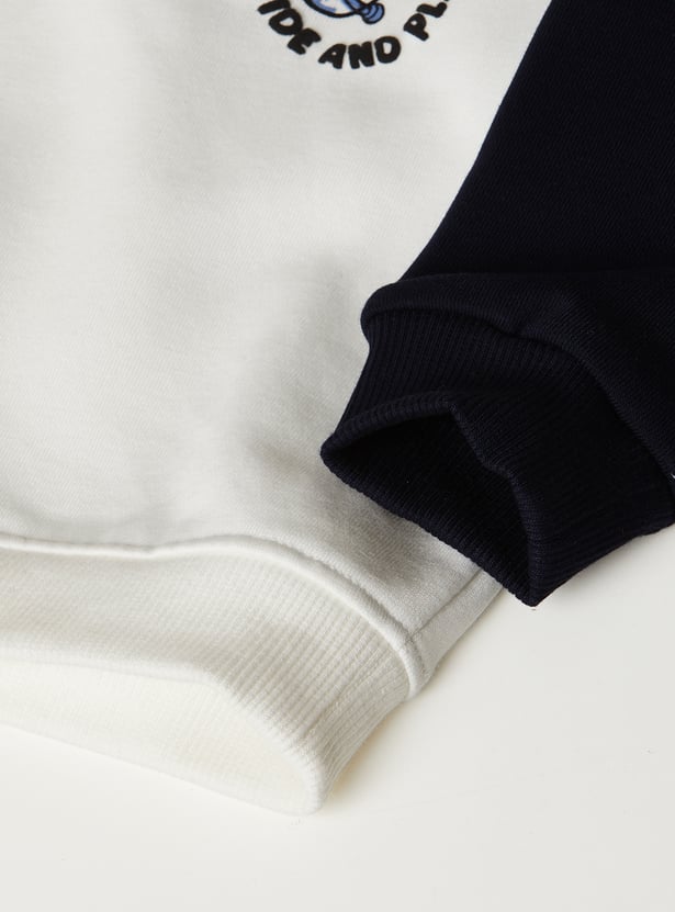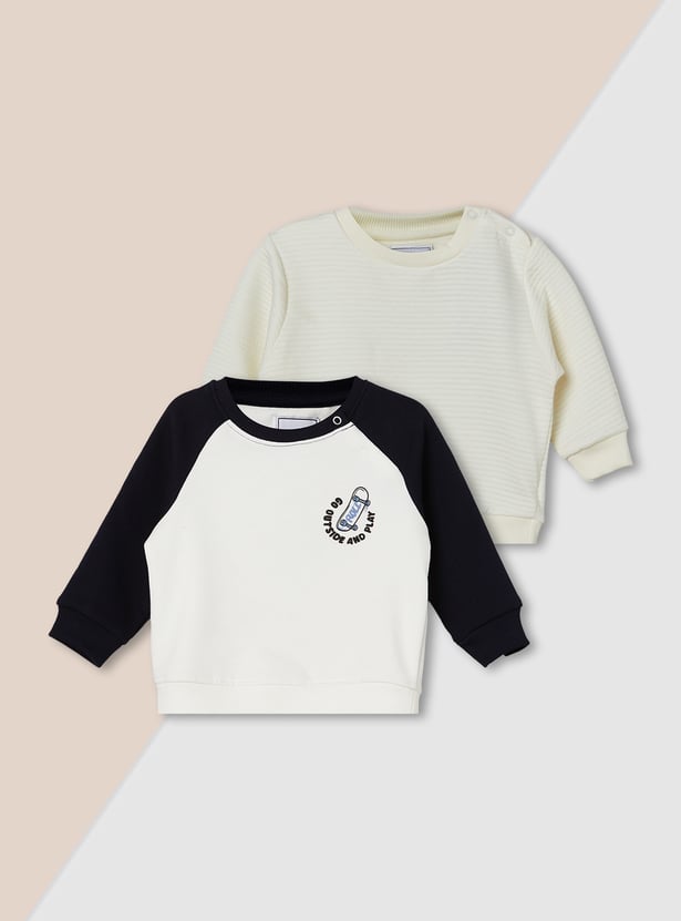 Refresh your winter must-haves with this cosy pack of two assorted sweatshirts, featuring a classic crew neck, full sleeves, and a snug ribbed hem. Designed with a handy snap-button closure at the neck for easy dressing.
