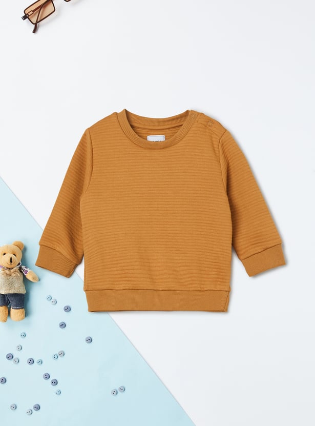 Refresh your cozy essentials with this pack of two assorted sweatshirts featuring a classic crew neck, full sleeves, and a convenient snap button closure at the neck.