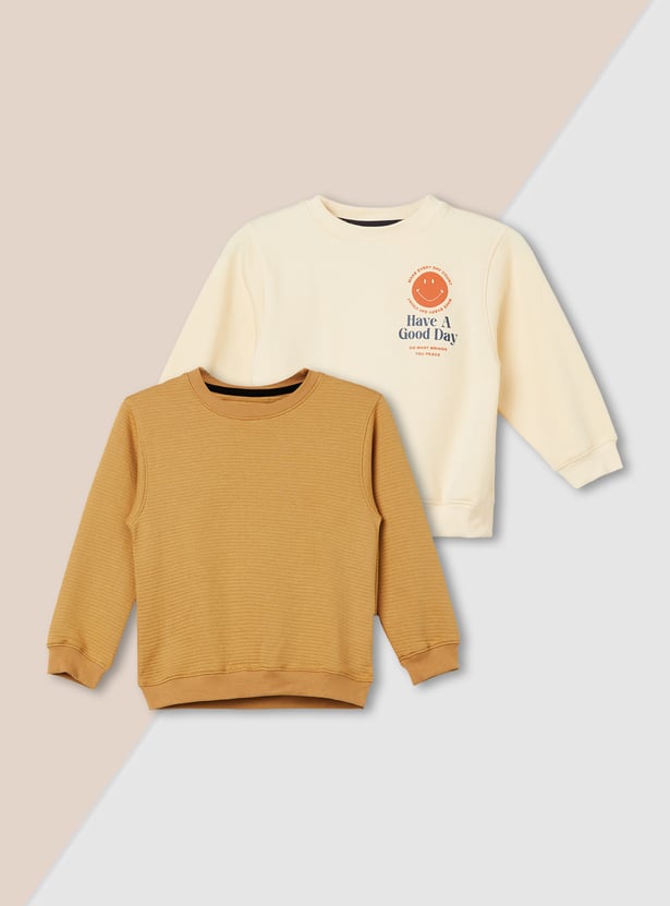 Refresh your everyday layers with this assorted pack of two sweatshirts featuring a classic crew neck, full sleeves, and a snug ribbed hem for a cosy fit.