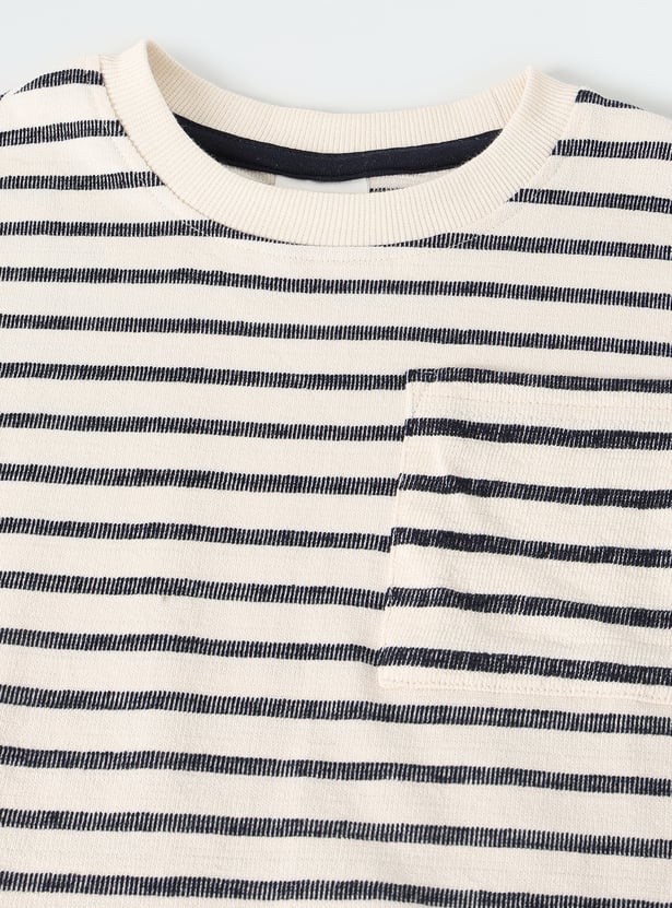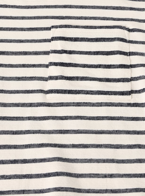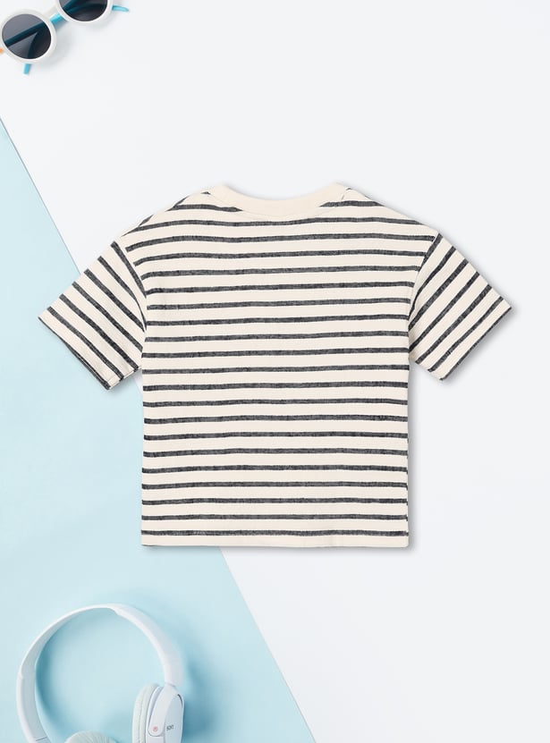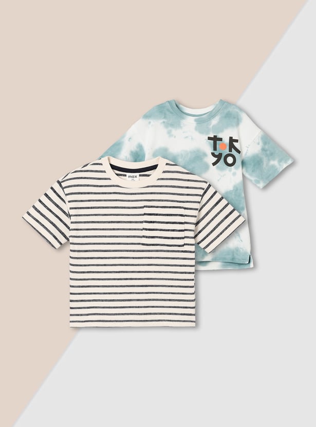 This pack includes two half-sleeve crew-neck tees — one striped and one printed — offering easy, everyday style with a fun mix of patterns.