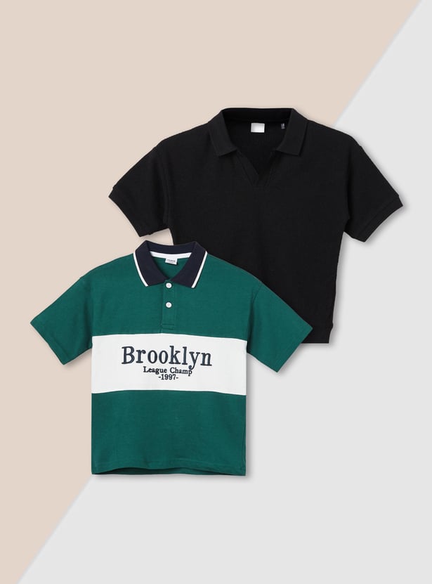 Refresh your wardrobe with this pack of 2 assorted T-shirts. One features a classic polo collar with half sleeves, while the other comes with a Johnny collar and half sleeves for versatile everyday style
