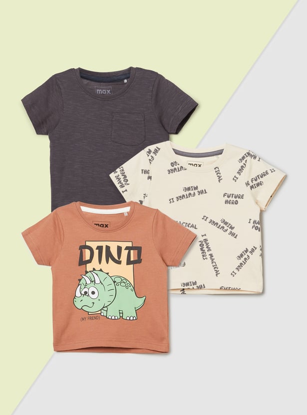 This assorted of 3 t-shirts features a classic crew neck and half sleeves, each with unique and eye-catching designs. Perfect for adding variety to your casual wardrobe.