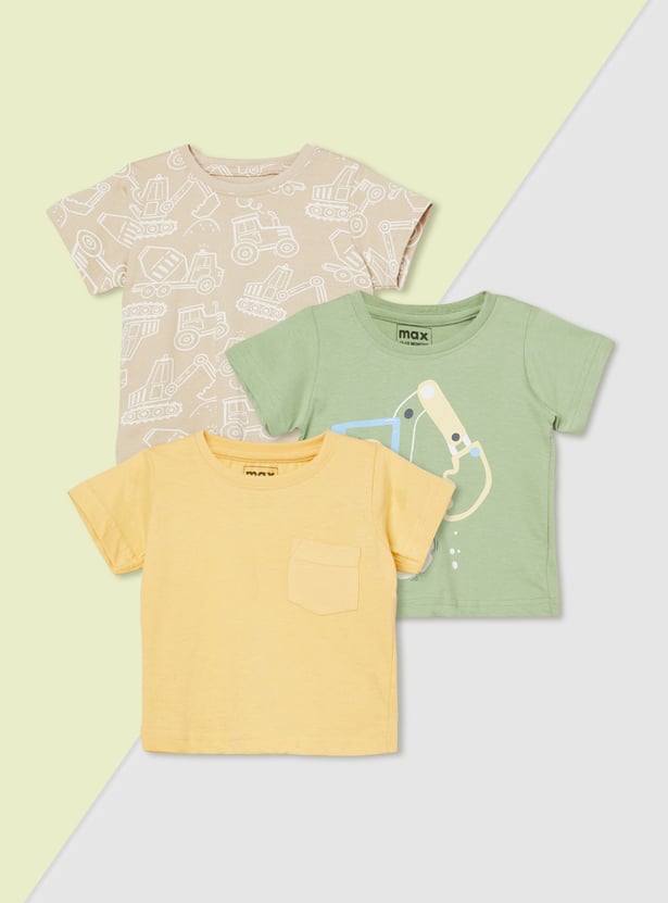 Stock up on everyday essentials with these T-shirts, each featuring a classic crew neck and half sleeves. Designed for comfort and casual style, these tees add variety and personality to your wardrobe.
