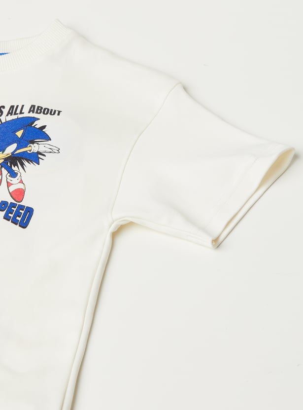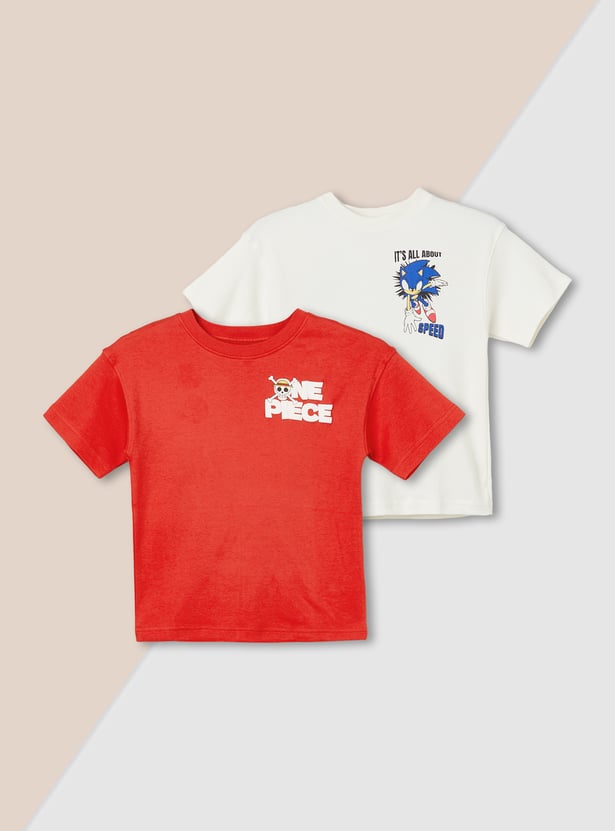Refresh their basics with this fun pack of two T-shirts featuring a classic crew neck and half sleeves. One showcases a One-Piece print, while the other highlights a Sonic design.
