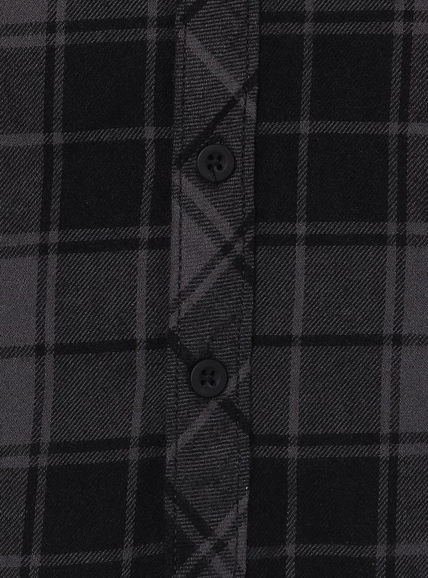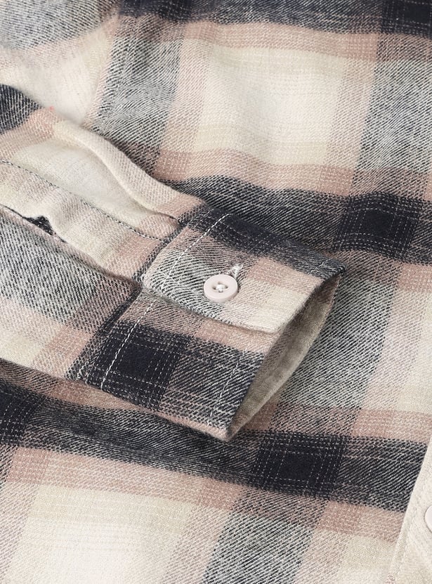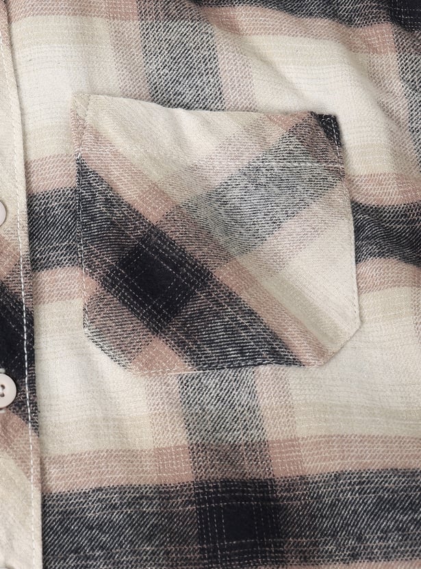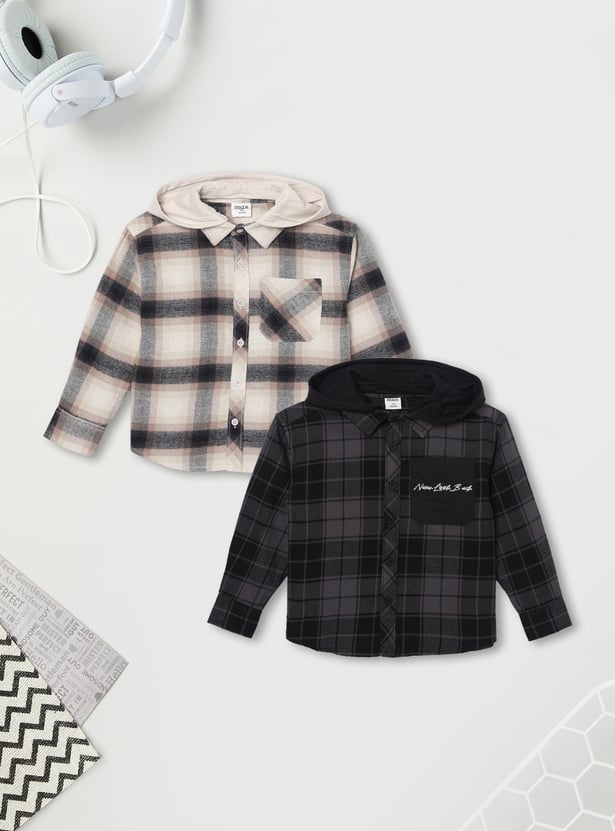 Stylish and versatile, this checked hooded shirt pack of 2 is designed with a button placket, full sleeves, and a practical patch pocket. The hood adds a casual twist to the classic checked pattern, making it perfect for layering or wearing on its own.