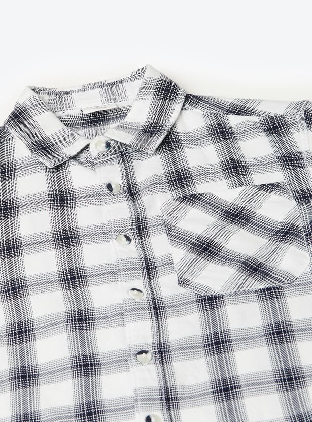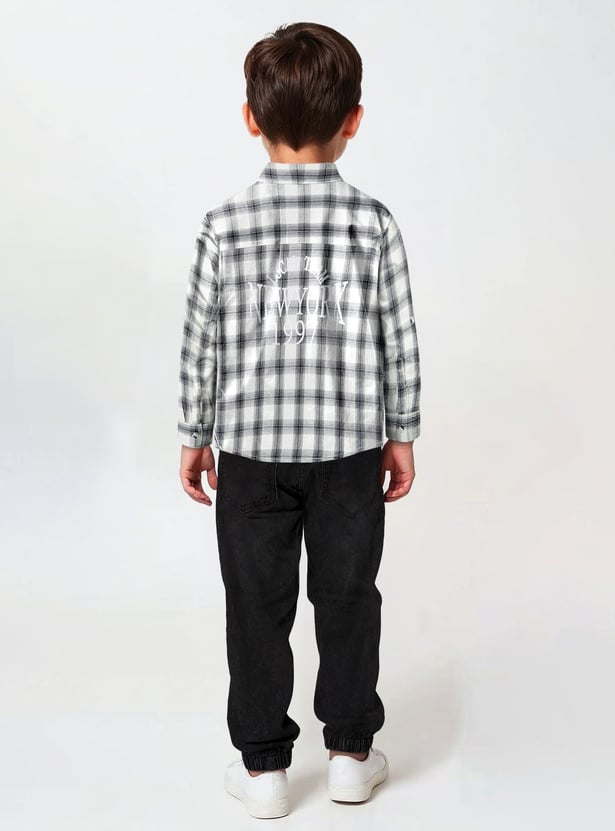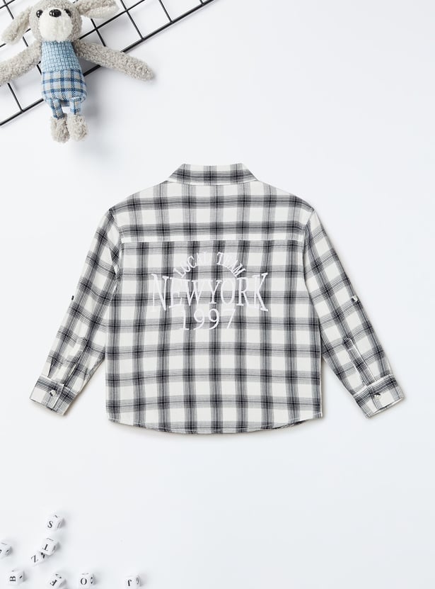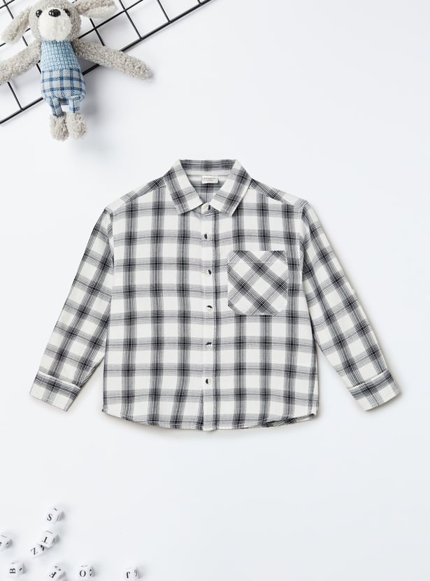 This checked oversized fit shirt blends laid-back charm with utility, featuring a spread collar, full button placket, and patch pocket. The full sleeves with button cuffs and fold tabs add versatile styling to this relaxed wardrobe staple.