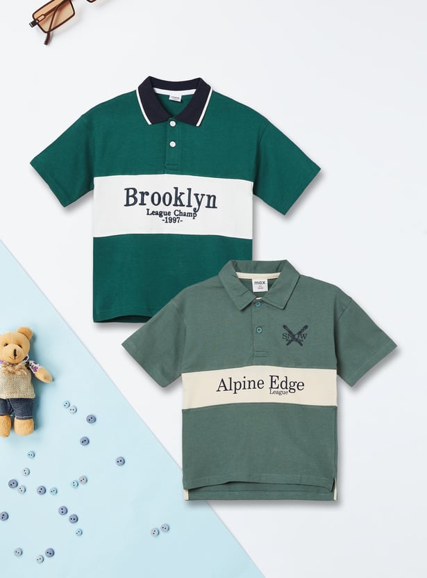 Update your everyday essentials with this pack of two colourblock polo T-shirts, featuring a classic polo collar and half sleeves. Crafted from soft fabric, these versatile tees offer all-day comfort and effortless style.