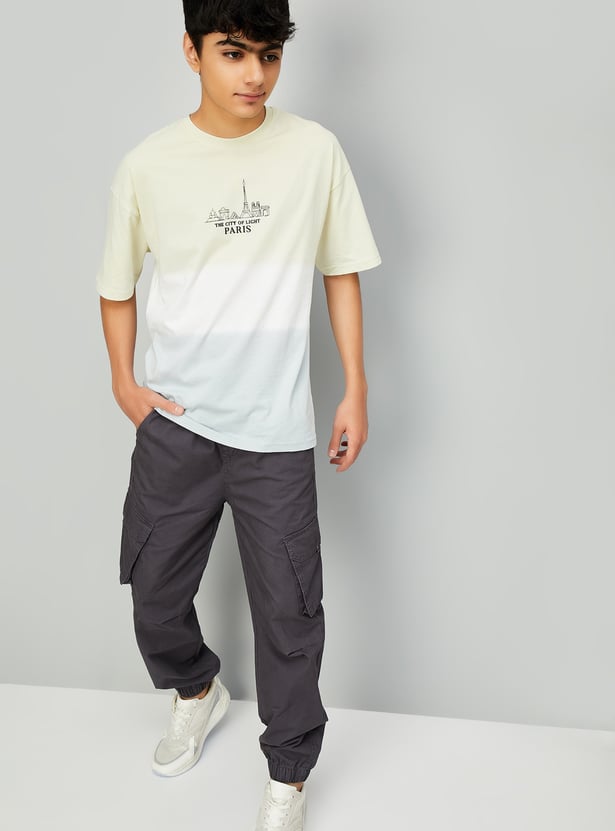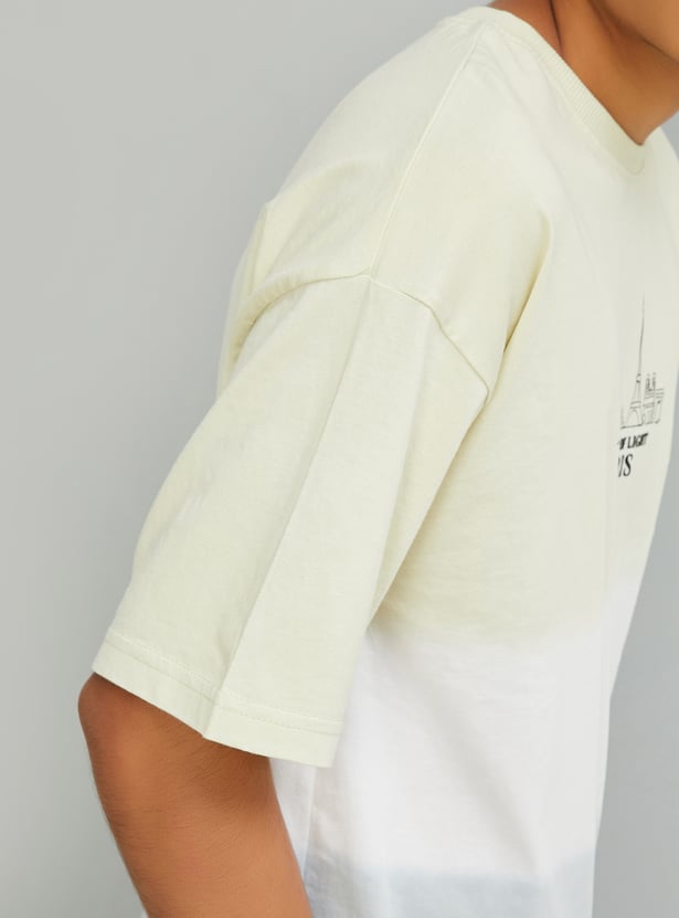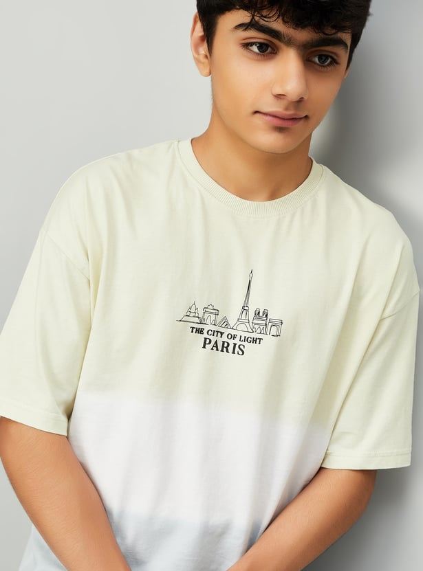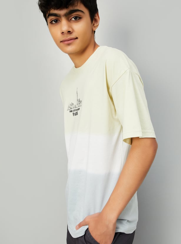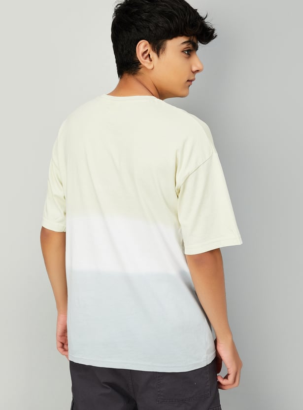 This colourblock T-shirt is a perfect blend of comfort and style, featuring a classic crew neck and half sleeves. The bold pattern adds a fun, eye-catching element to a timeless design, making it a versatile addition to your casual wardrobe.