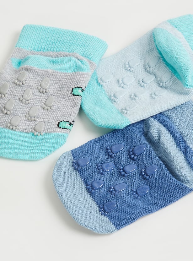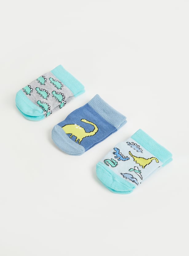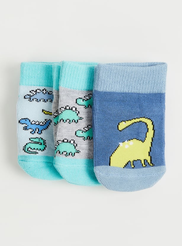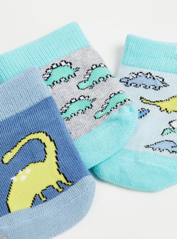 Boys Dino Print Ankle-Length Socks - Pack of 3