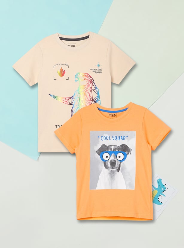 Bring versatility to his wardrobe by adding this pack of T-shirts to the rotation. This set features assorted graphic prints on the front, a crew neckline, and a half-sleeve design.
