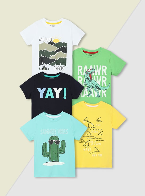 Enhance his wardrobe with this pack of versatile T-shirts. Featuring assorted prints, a crew neckline, and half sleeves, this set is ideal for refreshing his casual rotation with both style and comfort.