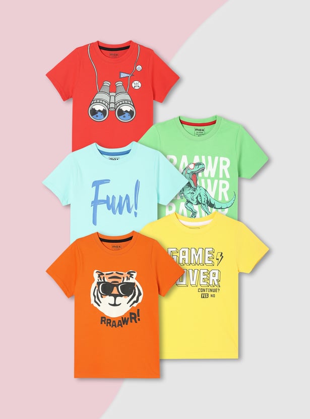 Enhance his wardrobe with this pack of versatile T-shirts. Featuring assorted prints, a crew neckline, and half sleeves, this set is ideal for refreshing his casual rotation with both style and comfort.