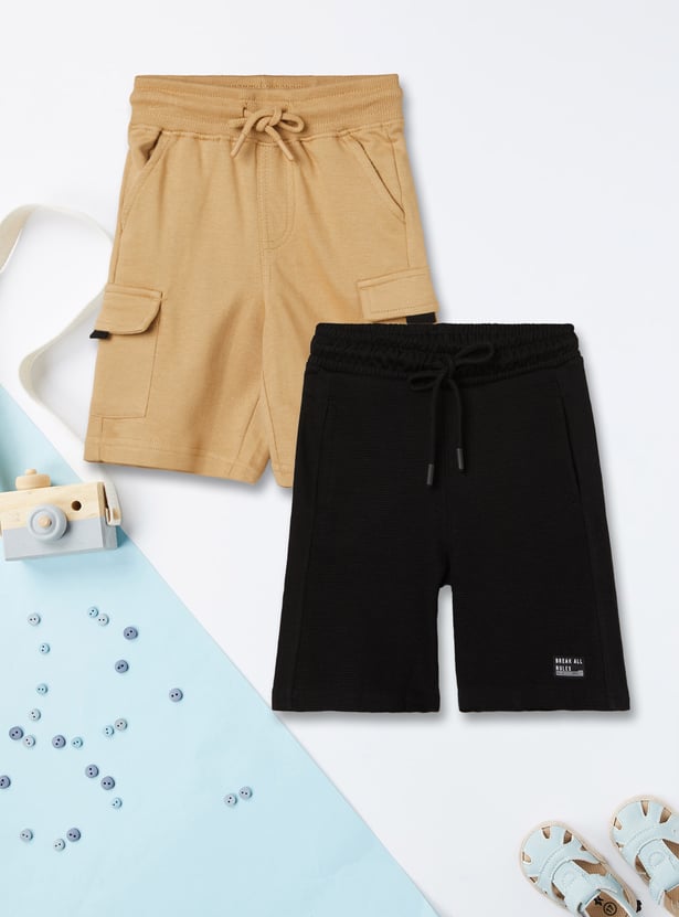 Keep it casual with this pack of 2 knit cargo shorts, featuring a drawstring closure and multiple pockets for comfort and functionality. A versatile staple for relaxed days.