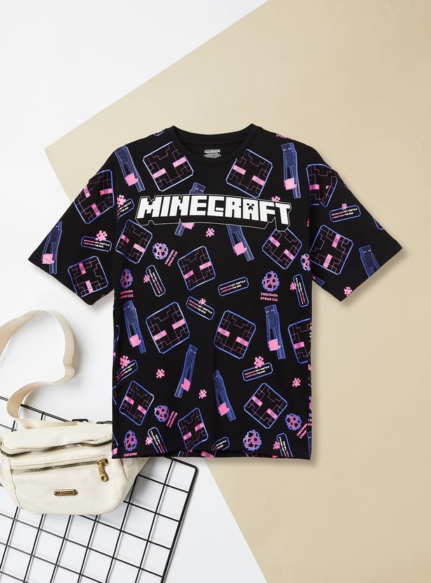 This Minecraft oversized print T-shirt is a fun and casual piece for everyday wear. Featuring a crew neck and half sleeves, it offers a classic silhouette with comfortable styling.