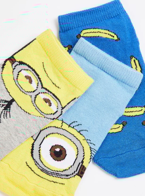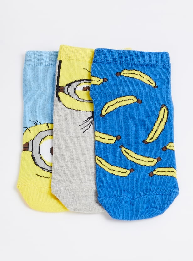 Boys Minion Print Ankle Length Socks - Pack of 3