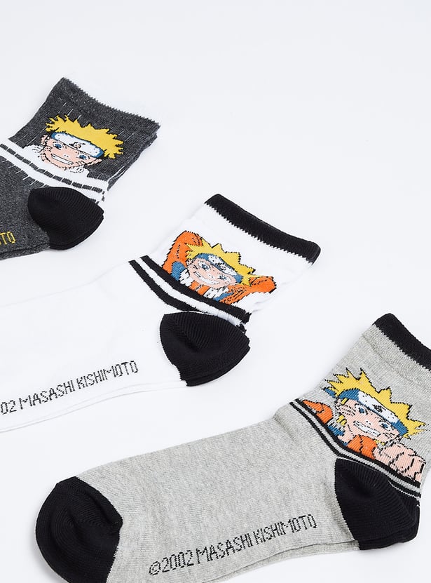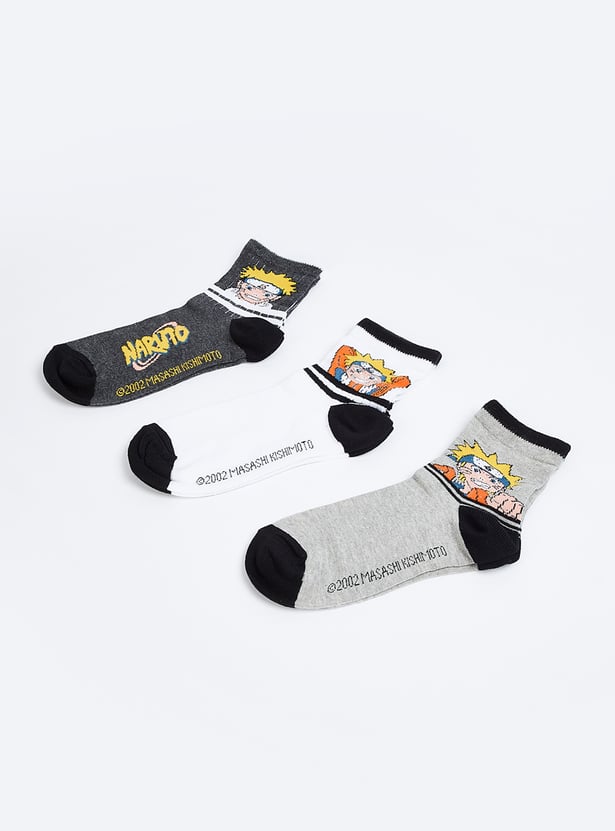 Boys Naruto Printed Ankle-Length Socks - Pack of 3